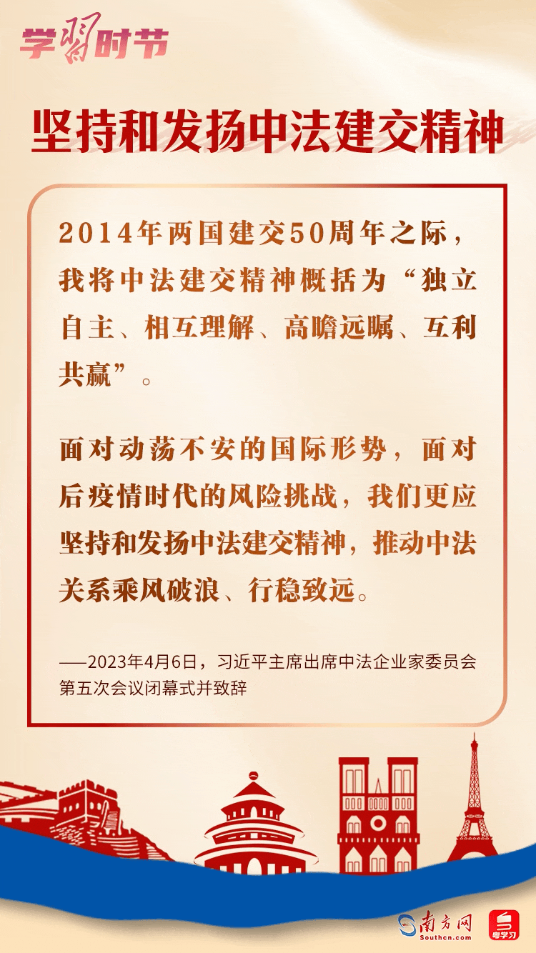 法國是第一個(gè)同中國建立正式外交關(guān)系的西方大國,“獨(dú)立自主、相互理解、高瞻遠(yuǎn)矚、互利共贏”的中法建交精神引領(lǐng)兩國關(guān)系始終走在中國與西方大國關(guān)系前列。歷經(jīng)60年風(fēng)雨,中法兩國將繼續(xù)秉持獨(dú)立自主精神屹立于世界大國之林,將繼續(xù)以成熟穩(wěn)健的雙邊關(guān)系為動蕩不安的世界提供更多的穩(wěn)定性。
