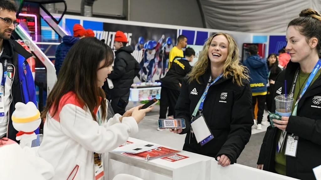 冬青奧村“運動員365”體驗區(qū),是運動員們每天進(jìn)出的必經(jīng)之地,也是賽會青年參加文化體驗活動、結(jié)交朋友、彼此換“pin”的聚集地。