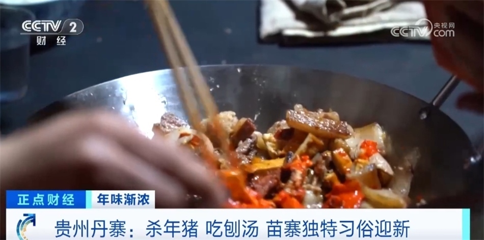 央視網(wǎng)消息:臨近春節(jié),在貴州丹寨縣,當?shù)乩习傩臻_始殺年豬、吃“刨湯”,以獨特的習(xí)俗歡歡喜喜迎新年。