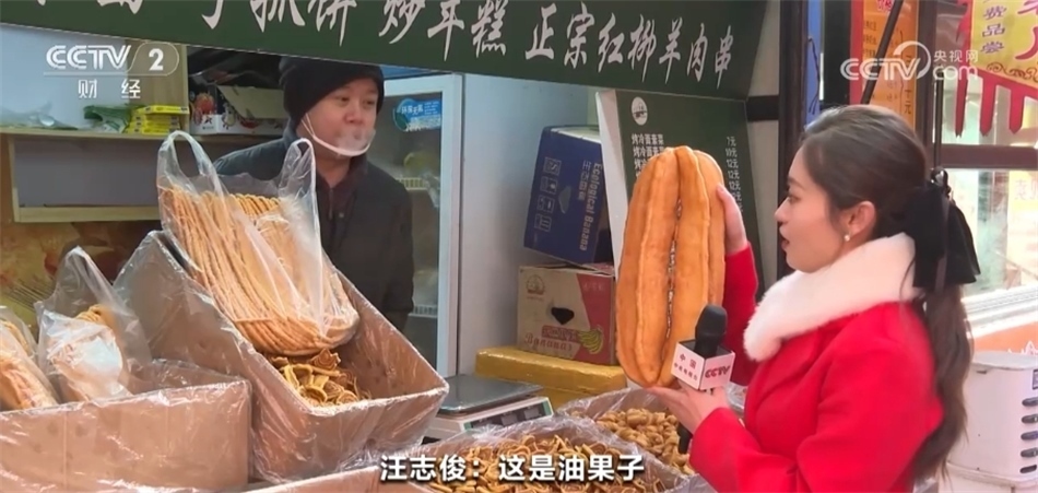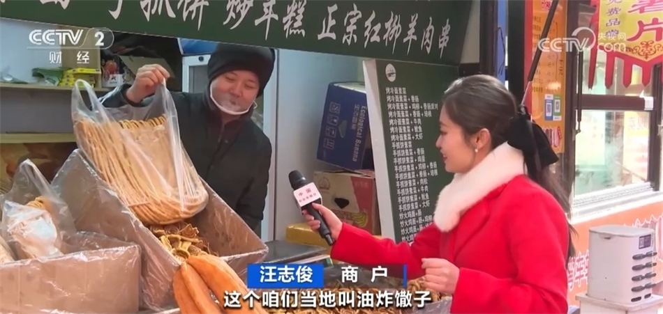 總臺記者 馬雅慧:今天一來到這里我就聞到了濃濃的香料味兒,大家看我身旁的這些都是青海特色的油炸年饃,當?shù)厝艘步杏驼ü?。老板,我看這里款式各式各樣的都有,您能給我們介紹一下嗎?