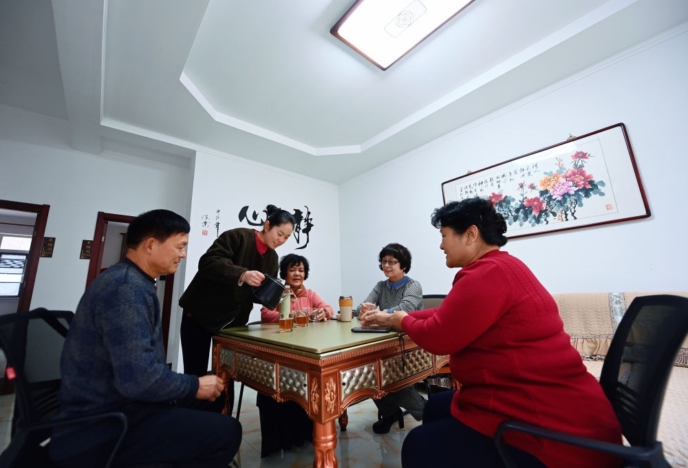 2024年1月30日,在天津市薊州區(qū)下營鎮(zhèn)前干澗村,民宿經(jīng)營者盧桂鳳為游客上茶水。新華社記者 趙子碩 攝