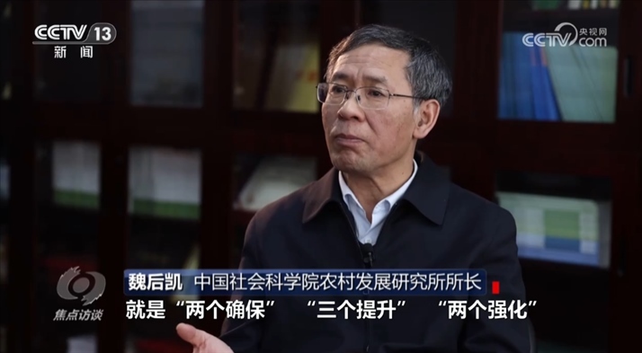 魏后凱:“今年‘三農(nóng)’工作的重要任務(wù)是‘兩個確?!齻€提升’‘兩個強化’?!畠蓚€確?!堑拙€任務(wù),要確保國家糧食安全,確保不發(fā)生規(guī)模性返貧。‘三個提升’,提升鄉(xiāng)村產(chǎn)業(yè)發(fā)展水平,提升鄉(xiāng)村建設(shè)水平,提升鄉(xiāng)村治理水平?!畠蓚€強化’,強化科技和改革的雙輪驅(qū)動,強化農(nóng)民增收的舉措。”