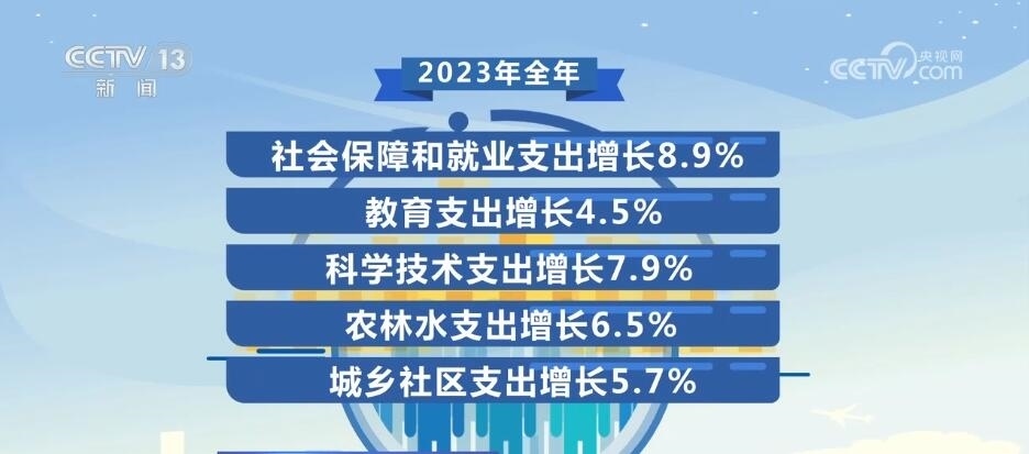 在我國(guó),民生投入不僅總量大,而且增速也很可觀。比如2023年全年,社會(huì)保障和就業(yè)支出增長(zhǎng)8.9%,教育支出增長(zhǎng)4.5%,科學(xué)技術(shù)支出增長(zhǎng)7.9%,農(nóng)林水支出增長(zhǎng)6.5%,城鄉(xiāng)社區(qū)支出增長(zhǎng)5.7%。