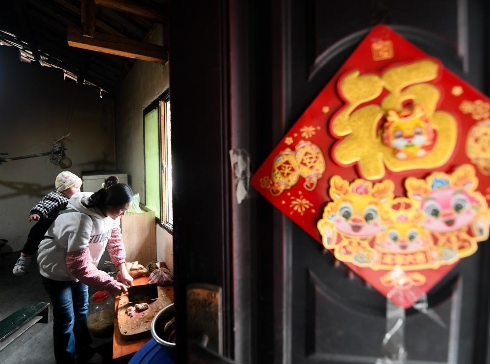 2月3日,在越西縣中所鎮(zhèn)陶家營村,游客到羅國芹家開的農家樂用餐。新華社記者 周科 攝