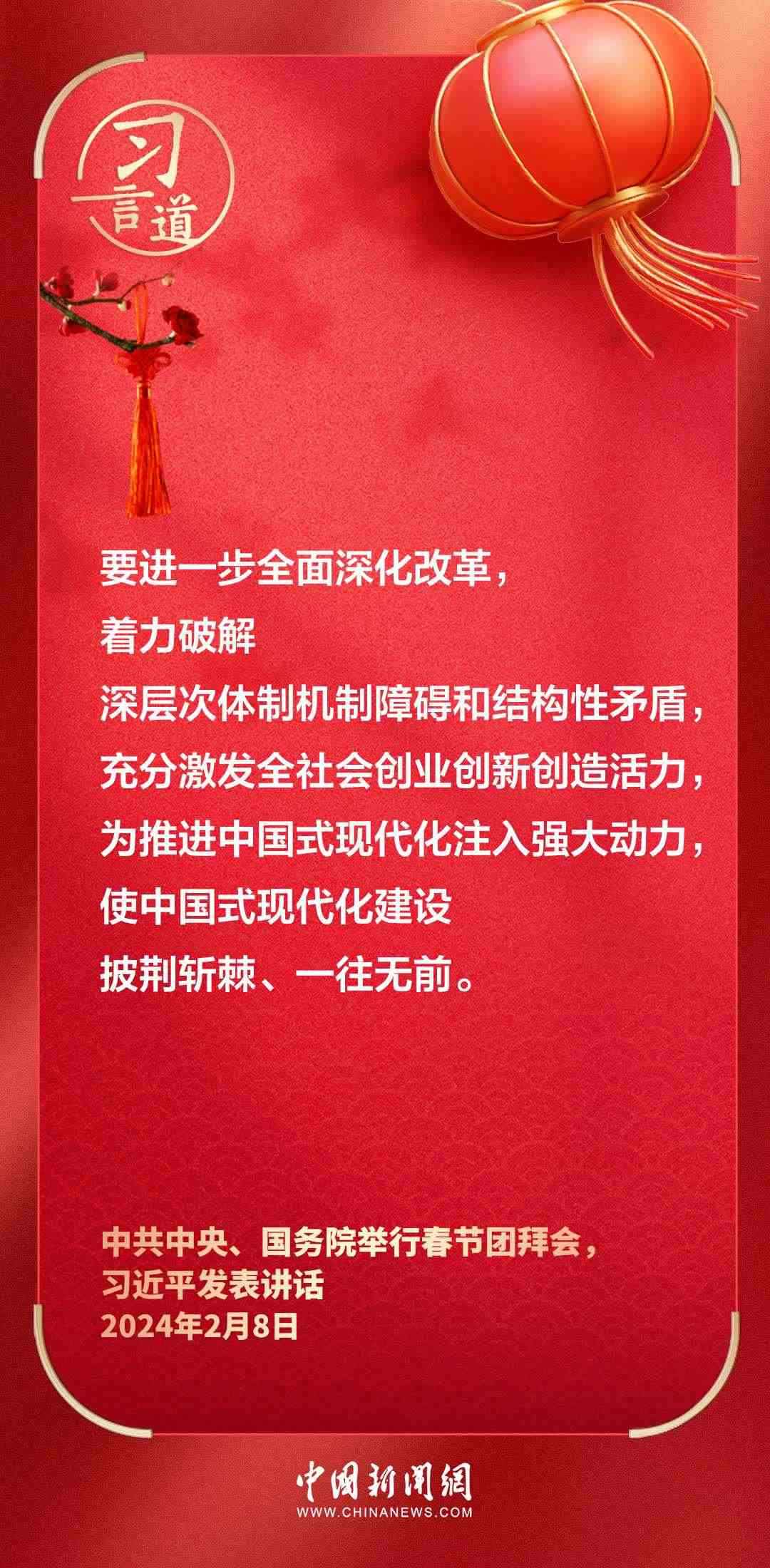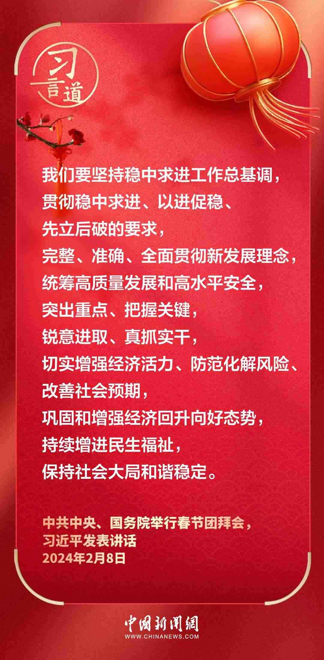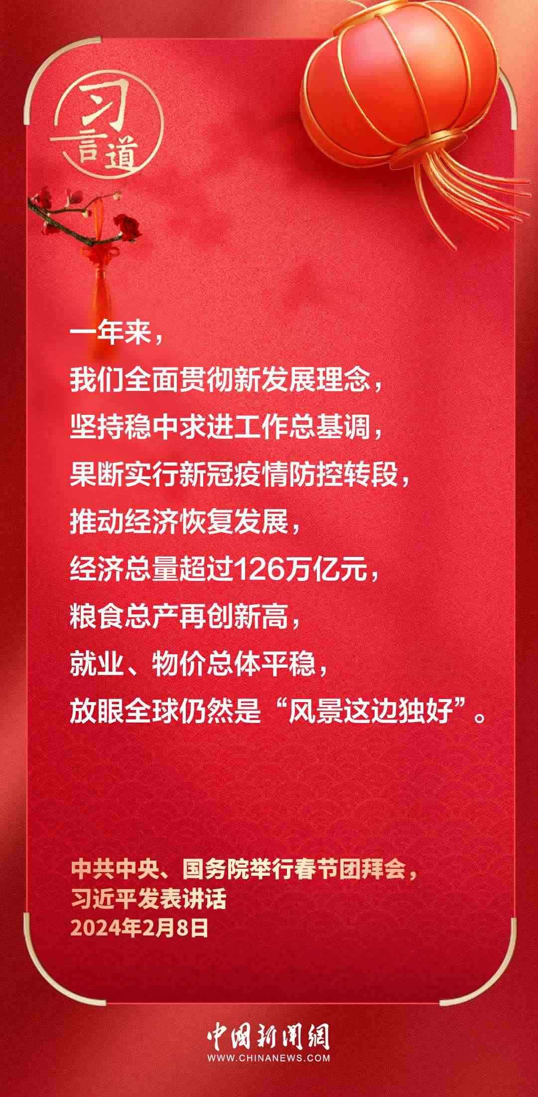 中共中央、國務院8日上午在人民大會堂舉行2024年春節(jié)團拜會。中共中央總書記、國家主席、中央軍委主席習近平發(fā)表講話——