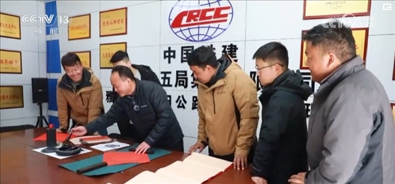 今年恰逢藏歷新年和農(nóng)歷春節(jié)同一天,堅(jiān)守崗位的同事們一起慶祝新年的到來,項(xiàng)目部的藏族小伙還用藏文寫下了新年祝福。