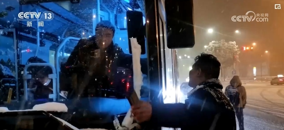 看到一些帶著小孩和老人的乘客沒(méi)能擠上車,站在風(fēng)雪中焦急等候,黃勁松和隊(duì)友們走上前,帶著他們前往公交站場(chǎng),提前上車等候發(fā)班。凌晨1時(shí)10分,第二趟加班車從車場(chǎng)出發(fā)了。
