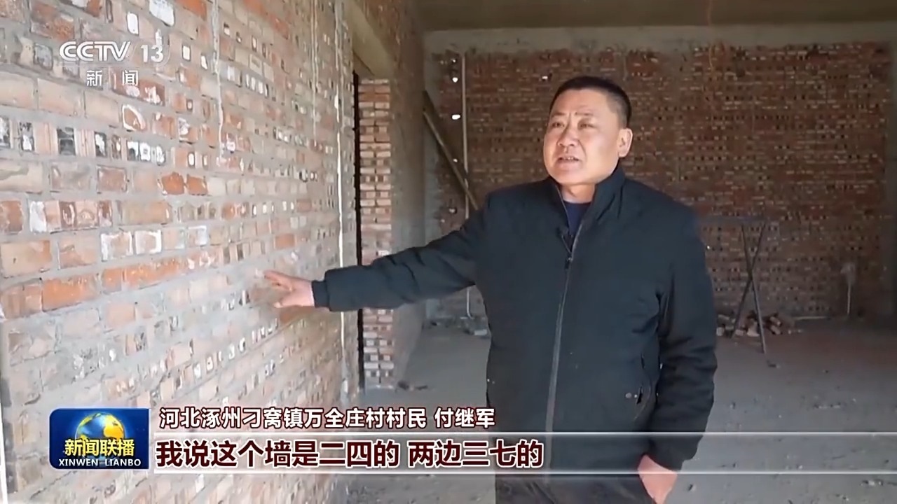 河北涿州刁窩鎮(zhèn)萬(wàn)全莊村村民 付繼軍:去年,總書記來(lái)那會(huì)兒這個(gè)房子剛壘墻壘到這個(gè)位置,總書記還這么摸了摸,說這活兒干得挺好,問了問我這是三七墻呀二四墻呀,我說這個(gè)墻是二四的,兩邊三七的,看著總書記特別溫暖,那會(huì)兒真是掉眼淚。準(zhǔn)備抓緊裝修,盡快搬進(jìn)來(lái),村里邊現(xiàn)在大家也都干勁挺大的,盡最大努力,把日子過好。