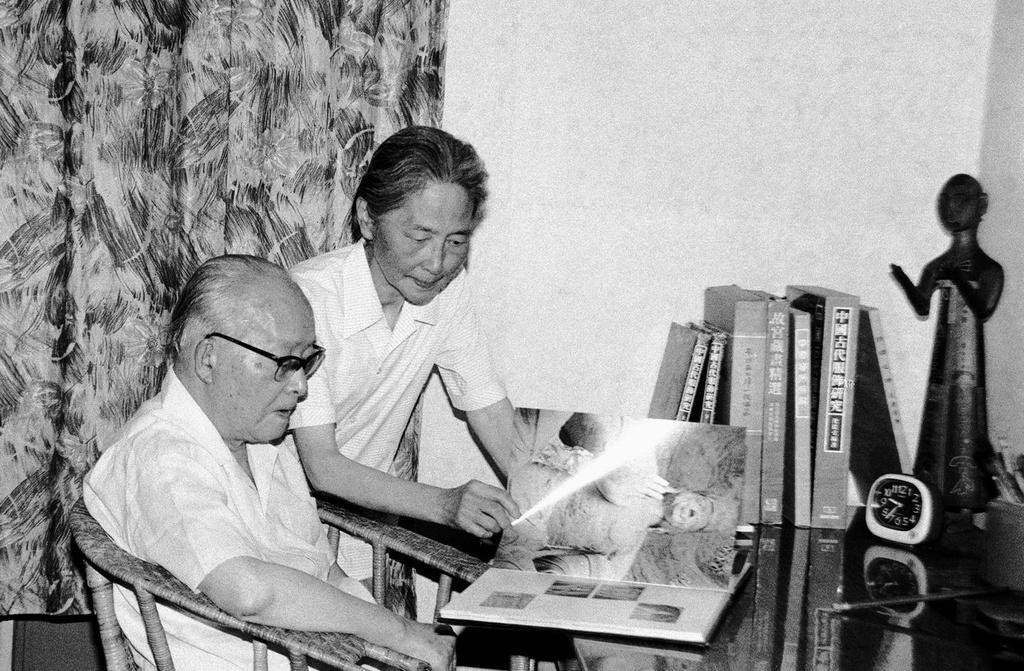 圖為沈從文和夫人在家中翻閱畫冊(cè)(1986年6月7日攝)。