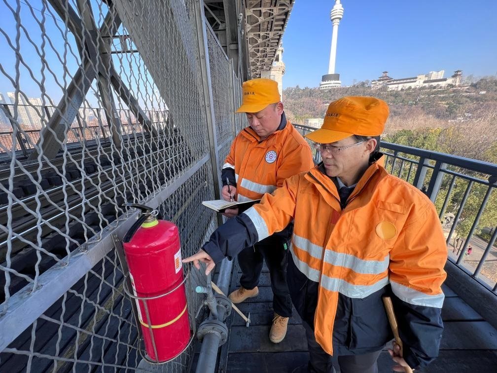 農(nóng)歷大年初三,湖北武漢陽光明媚?!叭f里長江第一橋”——武漢長江大橋宛若一條巨龍飛架于江水之上,氣勢恢宏。身穿工作服的陳卿明和同事,低頭、彎腰,循著大橋鐵道仔細地檢視鋼梁、枕木。