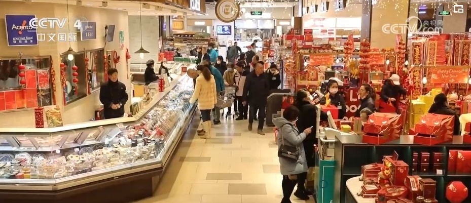 商圈的新春光影秀不僅點亮了城市夜景,同時也帶來了人氣。為迎接春節(jié)客流高峰,上海各大商圈攜手聯動,聚焦千億商圈建設,陸續(xù)推出400余項營銷活動,線上線下活動精彩紛呈,讓消費者新年開心購。在南京西路一家商超內,紅紅火火的福袋堆滿中庭,從新年新衣到年貨美食應有盡有,吸引大批顧客前來購買。
