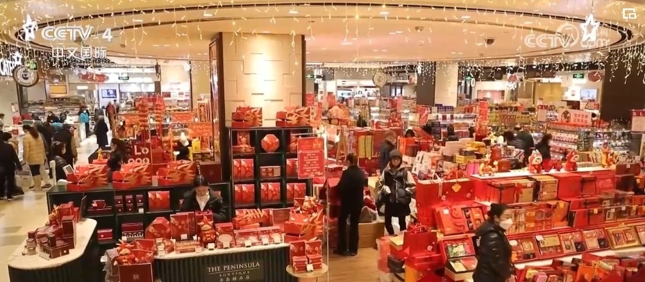 央視網(wǎng)消息:春節(jié)作為中國重要的傳統(tǒng)佳節(jié),也是居民消費旺季。這幾天,中國各地大街小巷張燈結(jié)彩,商場超市人頭攢動,鄉(xiāng)鎮(zhèn)大集年味濃厚,線上購物熱火朝天。家庭餐桌熱熱鬧鬧、“購物車”滿滿當當,“米袋子”“菜籃子”“果盤子”供應充足、價格穩(wěn)定,紅彤彤的春節(jié)市場、熱撲撲的年味兒煙火,見證著消費市場的旺盛活力。