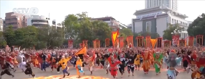 春節(jié)期間,河南靈寶市函谷關(guān)歷史文化景區(qū)舉行了一場新春大廟會,“廟”趣橫生、年味兒十足。在函谷關(guān)關(guān)樓前舉行的一場“穿越快閃秀”的演出現(xiàn)場,動感的音樂、炫酷的舞姿“點(diǎn)燃”了廟會現(xiàn)場。據(jù)了解,2024函谷關(guān)新春大廟會將持續(xù)到正月十七,每天有80多場演出,《楚漢爭關(guān)》實(shí)景馬戰(zhàn)、《秦王點(diǎn)將》歷史情景劇、《拜老儀式》等劇目輪番上演。