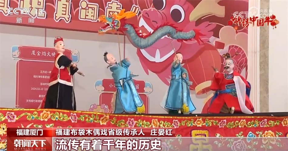 同樣在春節(jié)期間受到游客喜愛(ài)的還有廈門(mén)的非遺項(xiàng)目布袋木偶。莊晏紅是布袋木偶戲演出團(tuán)隊(duì)的一員,她告訴我們,春節(jié)期間,團(tuán)隊(duì)會(huì)有20多場(chǎng)的演出,忙得熱火朝天,在景區(qū)、酒店、藝術(shù)館為游客展示非遺魅力。