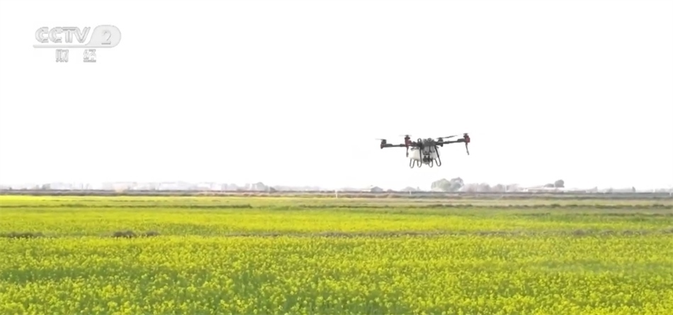 在江西省南昌市新建區(qū)的這個稻油輪作示范基地,金黃的油菜花競相開放?;êI峡眨瑹o人機(jī)在專業(yè)人員的操控下,均勻地將肥料和農(nóng)藥噴撒至油菜田間,為油菜提供生長的能量和養(yǎng)分,抑制病菌繁殖,提高油菜結(jié)莢率及產(chǎn)量。