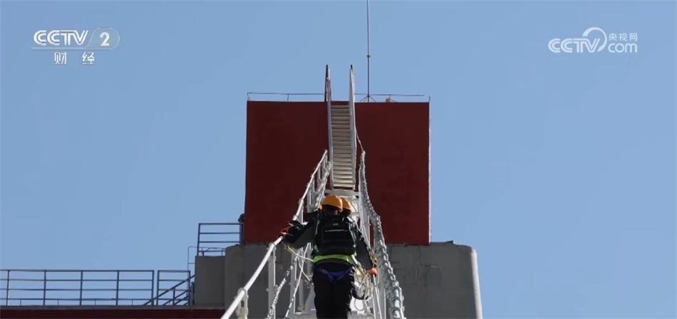 經(jīng)過30分鐘左右的攀爬,他們到達(dá)了整座大橋最高的位置,開始檢查鞍罩。鞍罩就是像馬鞍一樣的罩子,主要是為了保護(hù)邊跨和主跨的連接部位,鞍罩內(nèi)還裝有大橋健康檢測系統(tǒng)和除濕系統(tǒng),實時監(jiān)控大橋的健康狀態(tài)。