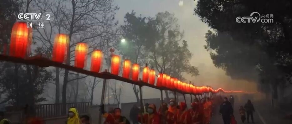 近日,一條火紅的“板燈龍”燈隊(duì)穿梭于江西南昌安義縣,“板燈龍”連接在一起,氣勢磅礴。