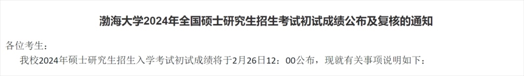 渤海大學(xué)考研初試成績公布