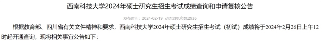 西南科技大學(xué)考研初試成績
