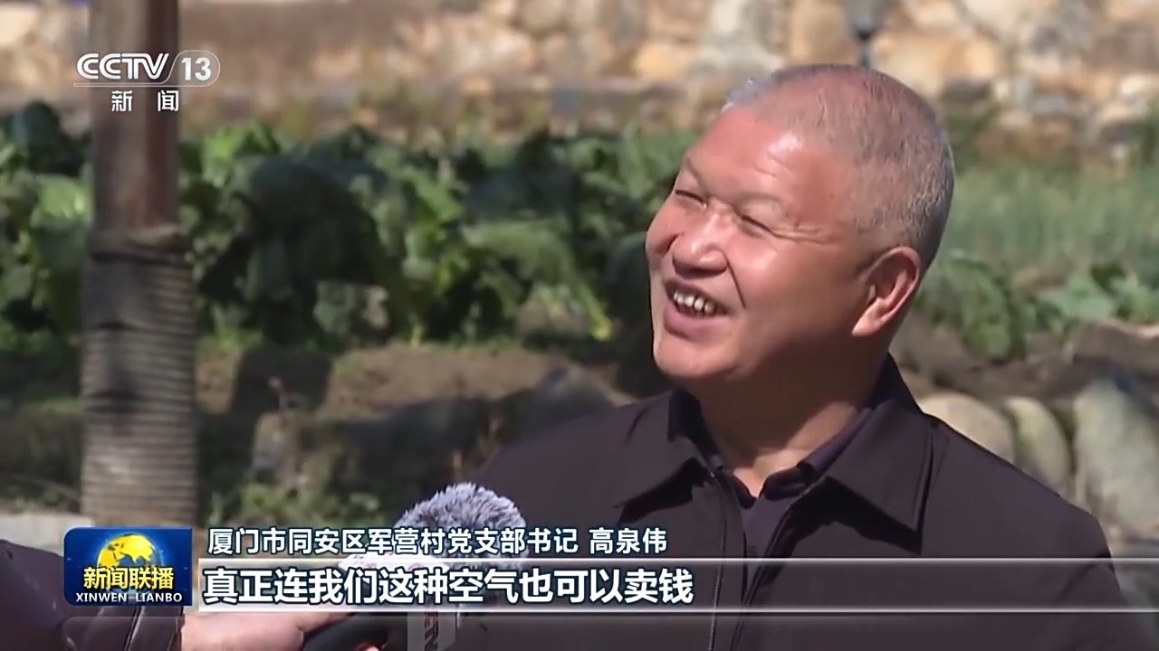 廈門市同安區(qū)軍營村黨支部書記 高泉偉:真正連我們這種空氣也可以賣錢,我們茶園所生產的這些碳匯,已經(jīng)賣出去了兩次了。
