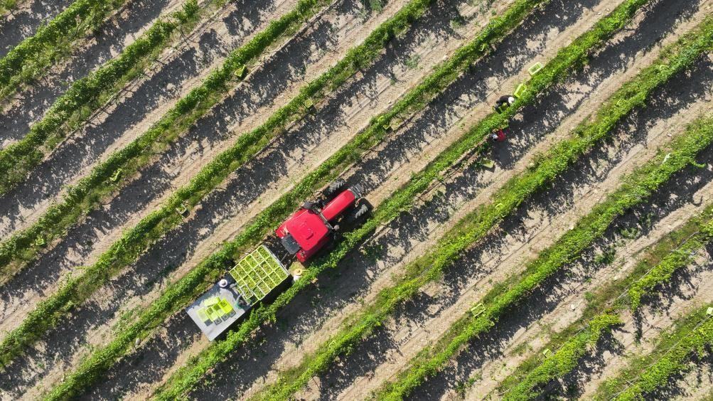 2023年9月,隨著寧夏賀蘭山東麓種植的貴人香、霞多麗等釀酒葡萄品種陸續(xù)成熟,當(dāng)?shù)鼐魄f迎來釀酒季。新華社記者 王鵬 攝