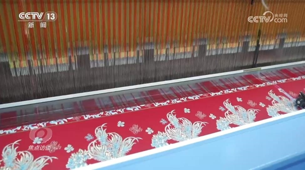 張明強(qiáng):“大提花的機(jī)器原來(lái)可以做窗簾,但同時(shí)也可以做馬面裙面料,也可以做服裝面料,就是同一臺(tái)機(jī)器可以做,所以我們這次轉(zhuǎn)型是不需要買機(jī)器的,它的成本就會(huì)比較低了?!?/p>