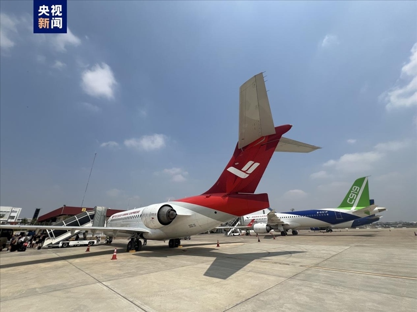 ·國產(chǎn)商用飛機C919及ARJ21首次飛抵柬埔寨。