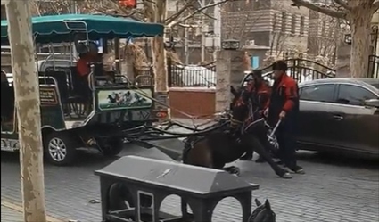 ·網(wǎng)傳視頻“天津五大道景區(qū)的馬累癱”,工作人員回應(yīng):是馬在耍賴,拖的都是電車,不存在累癱。