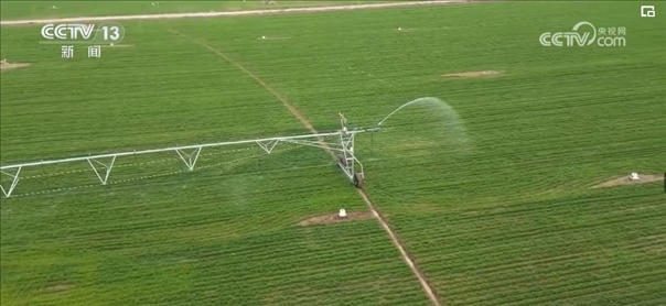 根據(jù)農(nóng)業(yè)專家的精準(zhǔn)測算和調(diào)度,園區(qū)工作人員啟動了大型指針式噴灌機(jī)。