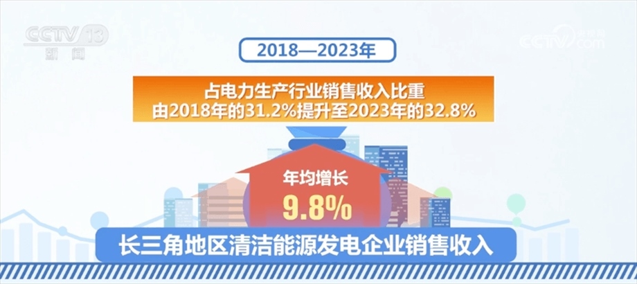 在綠色轉(zhuǎn)型方面,2018—2023年,長三角地區(qū)清潔能源發(fā)電企業(yè)銷售收入年均增長9.8%,占電力生產(chǎn)行業(yè)銷售收入比重由2018年的31.2%提升至2023年的32.8%,能源結(jié)構(gòu)“綠色化”成效顯著。