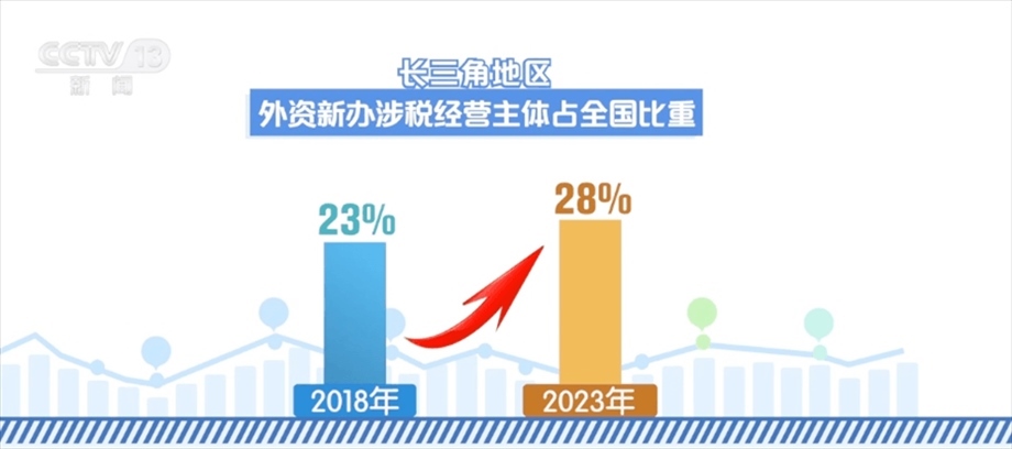 此外,長三角地區(qū)不斷擴(kuò)大制度性開放水平,推動構(gòu)建優(yōu)良營商環(huán)境,在吸引外資方面保持優(yōu)勢。稅收數(shù)據(jù)顯示,長三角地區(qū)外資新辦涉稅經(jīng)營主體占全國比重由2018年的23%提升至2023年的28%。其中,2019—2023年,吸引共建“一帶一路”國家來長三角投資主體超過8600戶,占共建“一帶一路”國家來我國投資涉稅經(jīng)營主體數(shù)量近50%。
