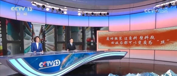 萬物皆可“織”是我們尋找紡織原料的目標(biāo)。廢舊服裝、邊角料、塑料瓶,回收后都可以變廢為“絲”。8個廢舊塑料瓶抽出的滌綸絲,就可以織成一件男士T恤衫。