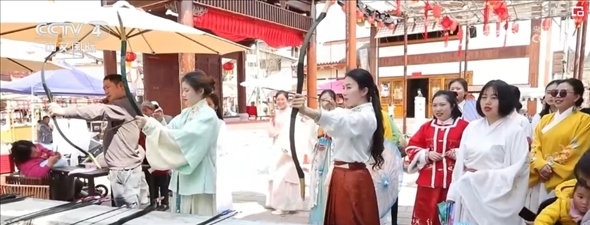 在四川遂寧市大英縣卓筒井鎮(zhèn),1.2萬畝桃花競相綻放,當(dāng)?shù)嘏e行桃花美食春游季活動,引來各地游客“打卡”。在管咸市街區(qū),體驗蹴鞠、飛花令等宋代元素活動,品嘗長桌宴。卓筒井鎮(zhèn)擁有首批國家級非物質(zhì)文化遺產(chǎn)“井鹽深鉆汲制技藝”,當(dāng)?shù)貙⒈彼蔚闹汽}文化與發(fā)展二十多年的甜桃產(chǎn)業(yè)“穿越”組合,打造出遂寧鄉(xiāng)村振興精品示范村“宋井桃源”,讓村民吃上了“旅游飯”。