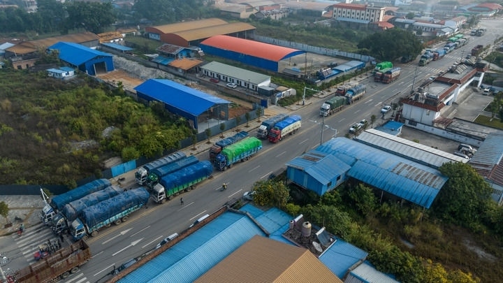 ?云南省德宏州隴川縣章鳳口岸等待通關(guān)的貨車(chē)(2023年12月3日攝)。新華社發(fā) 桂金再攝