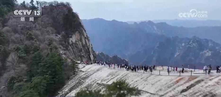央視網(wǎng)消息:春暖花開,萬物復(fù)蘇。這里是華山,它南接秦嶺,北瞰黃河,以奇、險著稱天下。西峰陡峭、南峰高聳,五座山峰壁立千仞,千崖如削。春天在這里沐浴萬物已經(jīng)有一個月的時間了,這幾天,隨著山上氣溫逐漸升高,峭壁上的植被也逐漸換上翠綠、嫩紅的衣裝,為險峻的石山增添了春意。