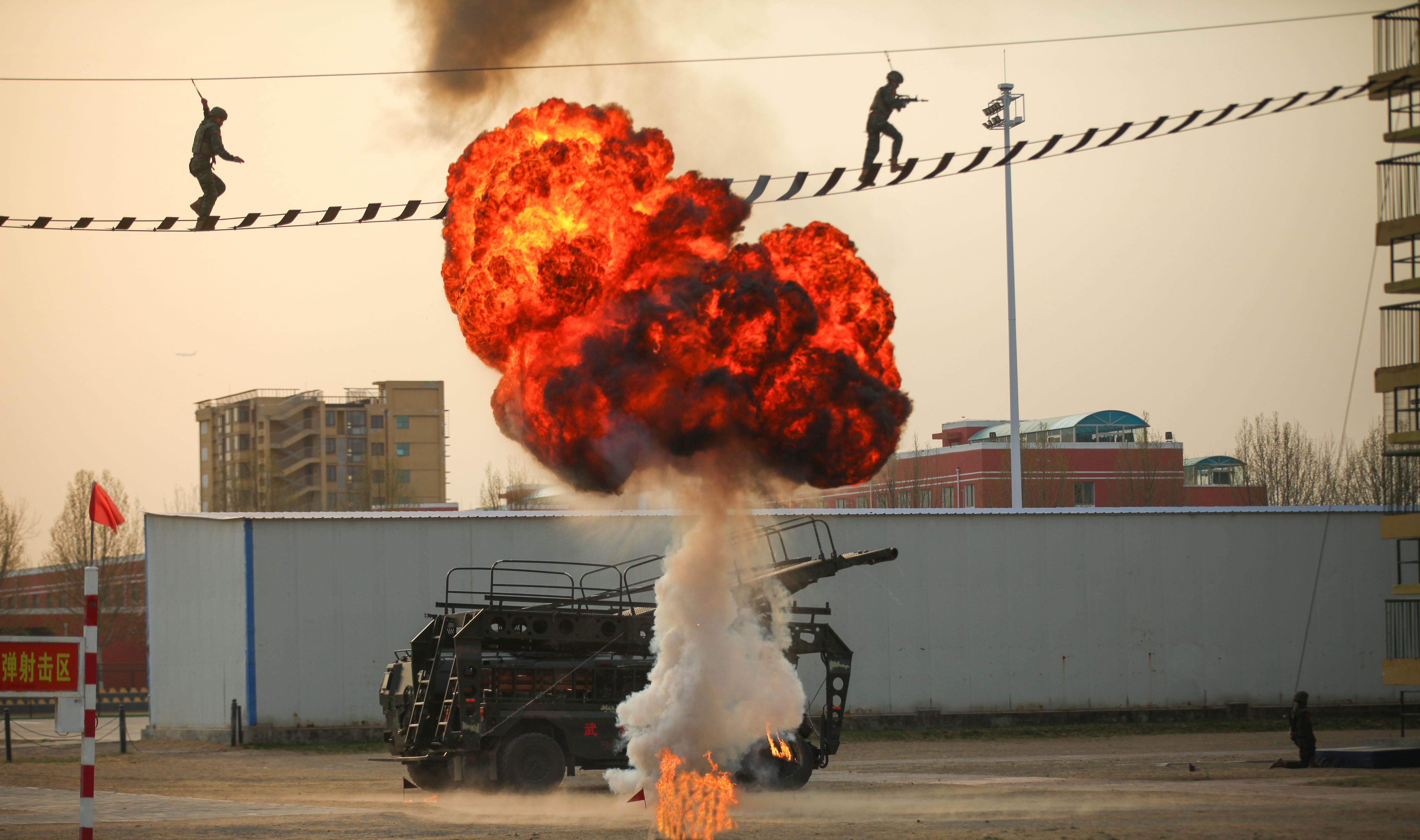 硝煙、炮火聲中,特戰(zhàn)隊(duì)員通過云梯、鋼索等,快速抵達(dá)任務(wù)區(qū)。在無(wú)人機(jī)和突擊裝備加持下,實(shí)戰(zhàn)化訓(xùn)練的攻擊體系更加立體,火力打擊更加精準(zhǔn),指揮協(xié)同更加集成。在不遠(yuǎn)處,“從這里走向戰(zhàn)場(chǎng)”的大字,熠熠生輝。