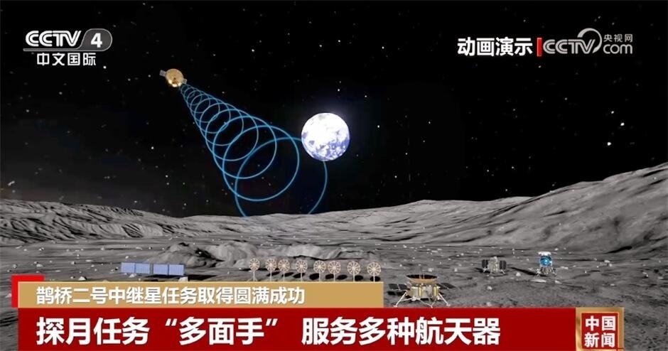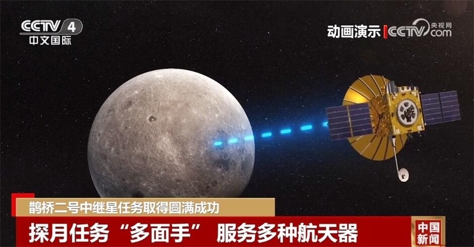 央視網(wǎng)消息:國家航天局4月12日宣布,鵲橋二號中繼星已完成在軌對通測試。經(jīng)評估,中繼星平臺和載荷工作正常,功能和性能滿足任務(wù)要求,可為探月工程四期及后續(xù)國內(nèi)、外月球探測任務(wù)提供中繼通信服務(wù),鵲橋二號中繼星任務(wù)取得圓滿成功。