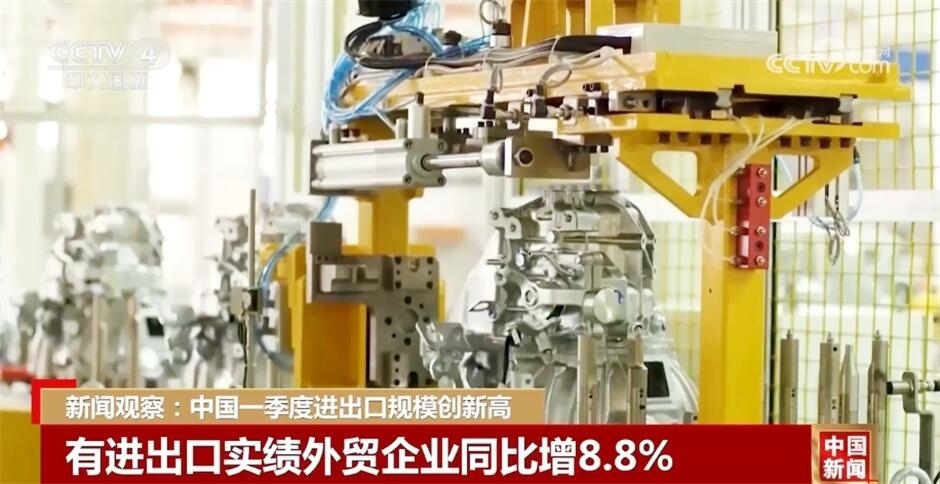 央視網(wǎng)消息:在4月12日下午舉行的國新辦新聞發(fā)布會上,海關(guān)總署相關(guān)負(fù)責(zé)人介紹,今年一季度,中國貨物貿(mào)易進(jìn)出口規(guī)模歷史同期首次突破10萬億元,進(jìn)出口增速創(chuàng)6個季度以來新高,外貿(mào)發(fā)展質(zhì)量穩(wěn)步提升。