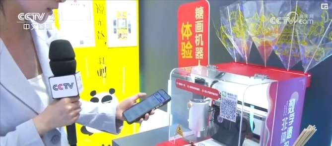 借助消博會這個平臺,不僅有很多國外產(chǎn)品走進(jìn)來,也有更多國貨走出去。3D打印機(jī)能打印食物,還能做糖畫,短短幾十秒,一個精致的龍形糖畫就做好了。把中國傳統(tǒng)美食和現(xiàn)代科技相結(jié)合,這樣的創(chuàng)新形式讓人眼前一亮。工作人員介紹,現(xiàn)在這款機(jī)器已經(jīng)遠(yuǎn)銷到美國??萍假x予國貨新活力,讓非遺走得更遠(yuǎn)。