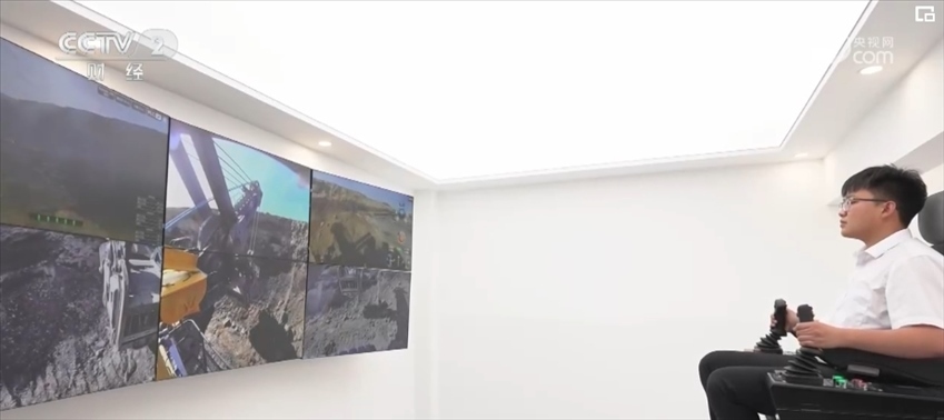 在內(nèi)蒙古南露天煤礦的生產(chǎn)作業(yè)現(xiàn)場,27立電鏟和108噸自卸車正在緊張有序地運行。與傳統(tǒng)設(shè)備相比,他們都是無人操作,產(chǎn)煤更加高效,駕駛員的操作空間也由原來狹小的司機室變?yōu)檫h(yuǎn)在千米外的遙控間。