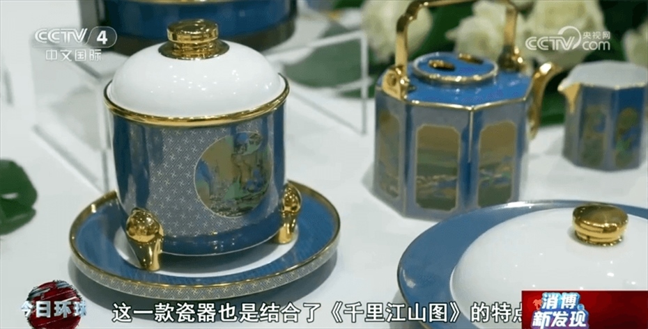 江西省景德鎮(zhèn)市商務(wù)局工作人員章少聰介紹稱:“這一幅畫是北宋王希孟先生創(chuàng)作的,叫作《千里江山圖》。這一款瓷器也是結(jié)合了《千里江山圖》的特點(diǎn),把中國傳統(tǒng)畫中的山水、花鳥都完全在瓷器上面展現(xiàn)出來?!?/p>