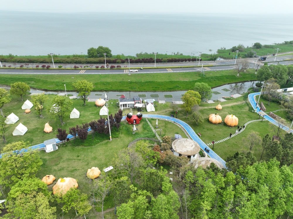 2024年4月11日,在浙江省湖州市吳興區(qū)楊溇村,游客在太湖邊的楊桂珍螃蟹莊園參觀游覽(無人機(jī)照片)。為改善太湖水質(zhì),2019年太湖完成“退蟹還湖”,在太湖水域圍網(wǎng)養(yǎng)殖的大閘蟹全部搬遷至內(nèi)塘養(yǎng)殖。