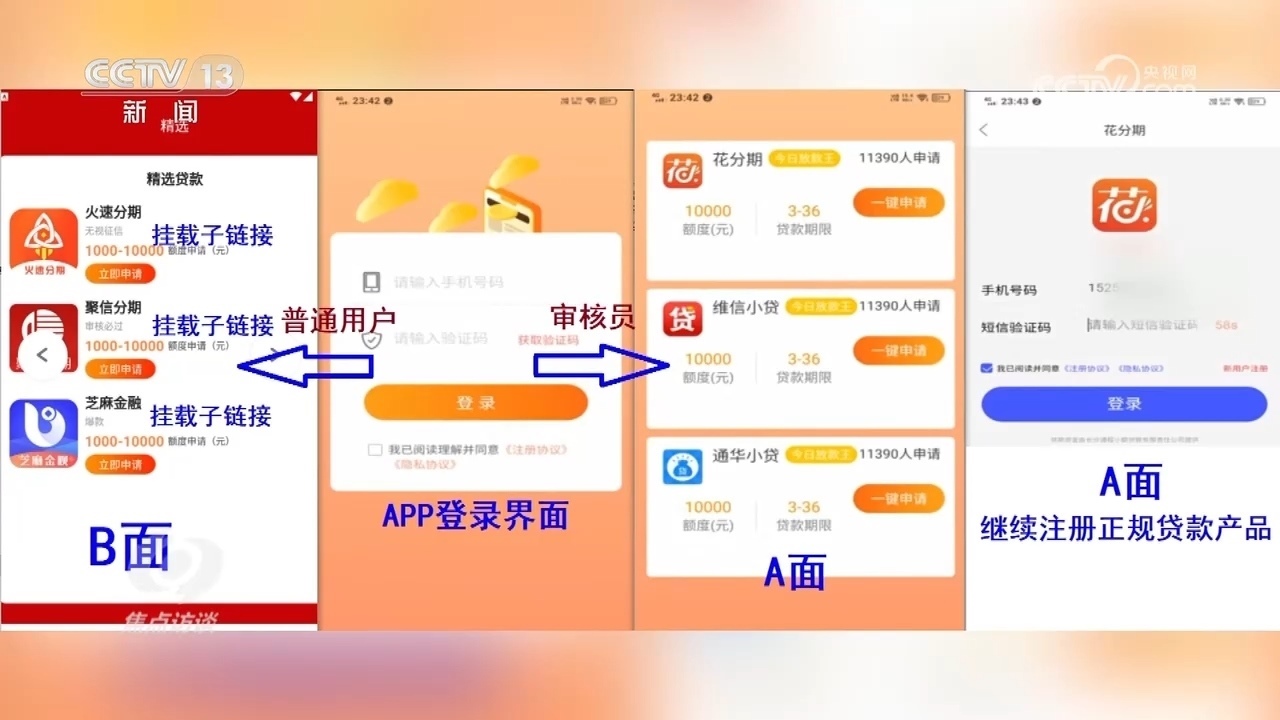 安徽省蕪湖市公安局經(jīng)開區(qū)分局偵查打擊部警務(wù)技術(shù)二級(jí)主管高陽:“提供審核的都是正規(guī)的貸款產(chǎn)品,點(diǎn)擊以后一步一步看起來都很正規(guī),這樣審核員就會(huì)通過,覺得這個(gè)APP是正常的,可以在官方應(yīng)用商城上架。但是普通用戶登錄以后,就會(huì)下載新的APP,新的APP都是詐騙APP?!?/p>