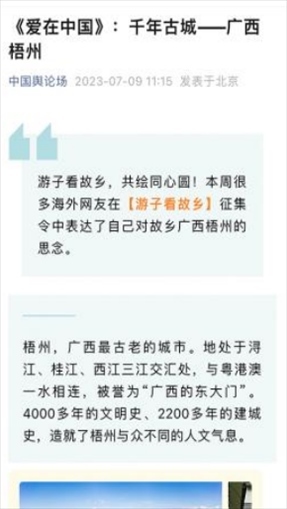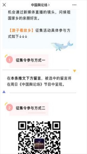 “早安中國切口新穎,有文化屬性和微記錄的氣質(zhì)?!薄懊看纹驳慕Y(jié)語字幕,都是從哪里選的?每天,都給我學(xué)習(xí)的機會?!薄皩I(yè)微記錄是媒體融合最寬廣的路?!薄对绨仓袊氛嬲媲星械鼐徑饬嗽S多海內(nèi)外網(wǎng)友的故土思鄉(xiāng)情切,也收到了來自四面八方的認可及反饋。《中國輿論場》節(jié)目持續(xù)發(fā)出“游子看故鄉(xiāng)”征集令,請海外華僑華人說出對家鄉(xiāng)的思念和心中最想“打卡”的祖國美景。