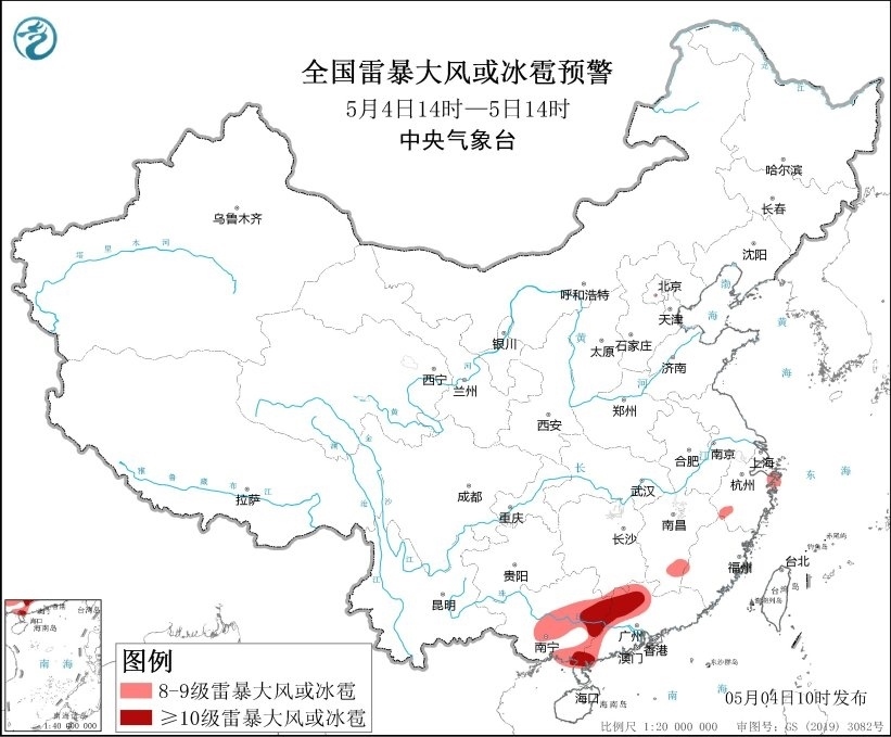 央視網(wǎng)消息:中央氣象臺(tái)5月4日10時(shí)繼續(xù)發(fā)布強(qiáng)對(duì)流天氣藍(lán)色預(yù)警,預(yù)計(jì)5月4日14時(shí)至5日14時(shí),廣西中東部、廣東西部、江西南部等地的部分地區(qū)將有8-10級(jí)雷暴大風(fēng)或冰雹天氣,其中廣西東部和東南部沿海、廣東西北部和西南部沿海等地的局地將有10級(jí)以上雷暴大風(fēng),最大風(fēng)力可達(dá)11級(jí);湖南南部、江西、福建西部和東南部、貴州西南部、廣西中東部、廣東、海南島北部等地的部分地區(qū)將有小時(shí)雨量大于20毫米的短時(shí)強(qiáng)降水天氣,其中廣西東部、廣東中西部等地的局地最大小時(shí)雨量大于50毫米,最大可達(dá)80毫米以上。