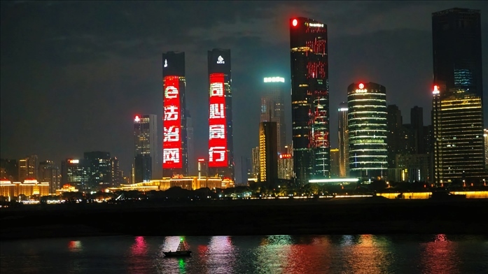 隨著夜幕降臨,寶塔山化身為一幅巨大的畫布,上演著音樂燈光秀。聲光合一、三山聯(lián)動,360度環(huán)繞演繹,生動展現(xiàn)了延安的紅色故事和文化特色。