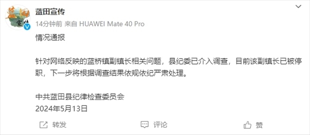·官方通報(bào)“副鎮(zhèn)長半夜叫別人妻子唱歌”:涉事副鎮(zhèn)長已被停職。