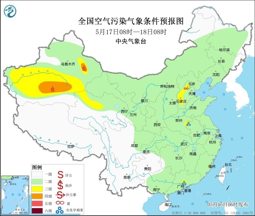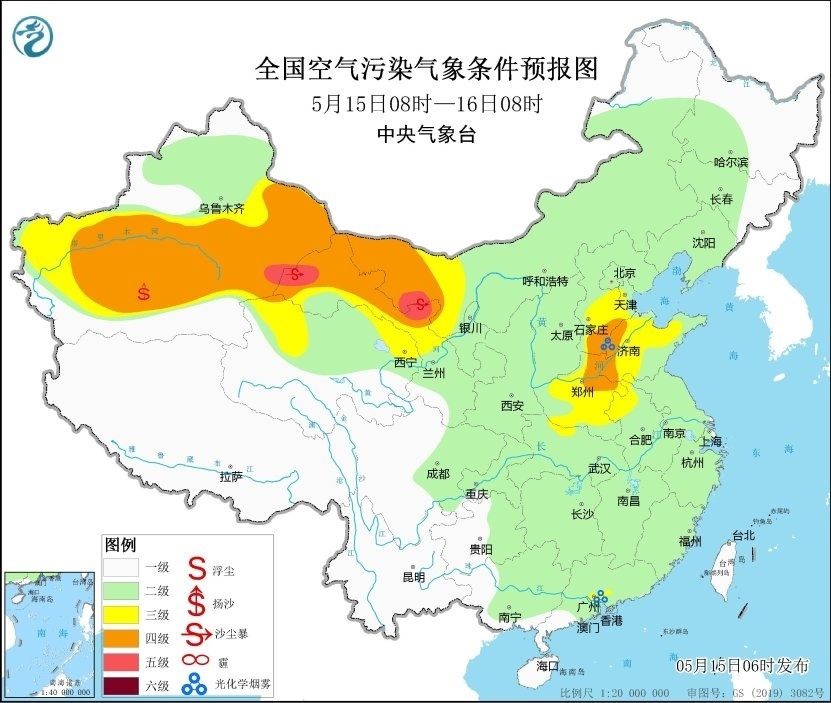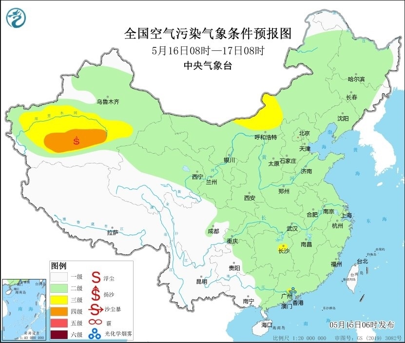 央視網(wǎng)消息:據(jù)中央氣象臺網(wǎng)站消息,預(yù)計,5月15日08時至16日08時,新疆南部和東部、甘肅西部、內(nèi)蒙古西部、青海北部以及河南中部等地有揚沙或浮塵天氣,其中新疆東部、甘肅西部、內(nèi)蒙古西部等地局地有沙塵暴,中央氣象臺5月15日06時繼續(xù)發(fā)布沙塵暴藍(lán)色預(yù)警。