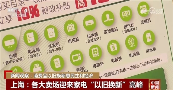 江蘇各地細(xì)化以舊換新落地政策時,把售后服務(wù)專業(yè)化、便利化、標(biāo)準(zhǔn)化作為重要手段。在各大家電賣場,消費(fèi)者可以享受折扣優(yōu)惠、舊家電拆裝、上門安裝等“一條龍”服務(wù)。按照上海市新一輪綠色智能家電消費(fèi)補(bǔ)貼政策,購買16大類一級能效家電產(chǎn)品,消費(fèi)者可以按照成交價格的10%享受一次性立減補(bǔ)貼。截至本月13日,各類補(bǔ)貼產(chǎn)品銷售額已達(dá)6億元,交易量7.7萬單。
