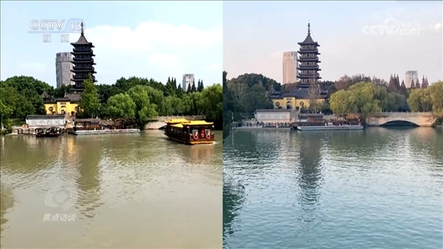 央視網(wǎng)消息(焦點(diǎn)訪談):這里是浙江嘉興的南湖,這兩張南湖的照片分別拍攝于2016年和2021年,同一視角相隔5年,水質(zhì)的變化已經(jīng)清晰可見。今天的南湖水,水草蕩漾,碧波清澈。在過去7年多的時(shí)間里,南湖水質(zhì)從之前的Ⅴ類,提升至如今的湖庫Ⅲ類水,這樣的變化是怎么發(fā)生的呢??